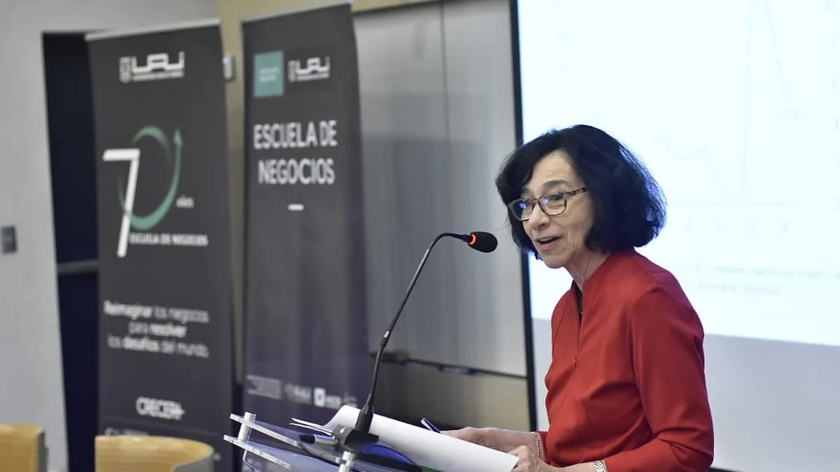 Rosanna Costa, presidenta del Banco Central, analiza la economía chilena y el mercado laboral en un seminario de la Universidad Adolfo Ibáñez.