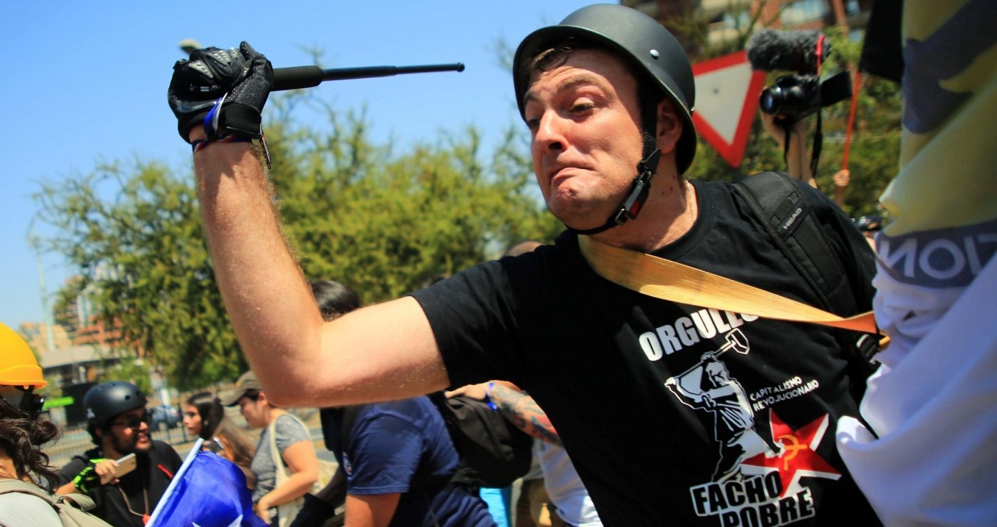 Izquierdo es el líder del movimiento de ultra derecha y es acusado de agredir a otros manifestantes en las marchas del “Rechazo” en febrero y marzo de 2020 en Providencia.